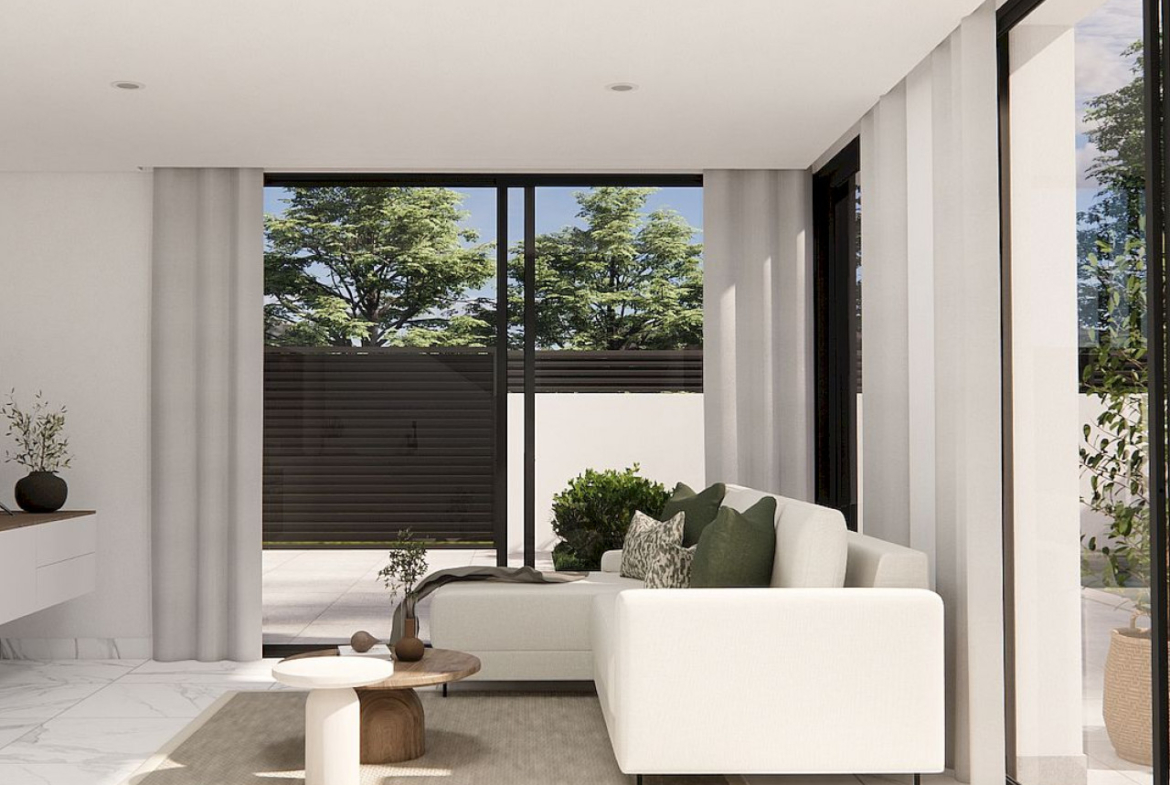 Šiuos dviejų aukštų namus sudaro trys dviviečiai miegamieji (visi su įmontuotomis spintomis ir du su tiesioginiu išėjimu į pirmojo aukšto terasą), drabužinė pagrindiniame miegamajame, du vonios kambariai, atskiras tualetas, moderni virtuvė su pusryčių baru ir atviro plano svetainė / valgomasis, vedantis į privatų sodą.