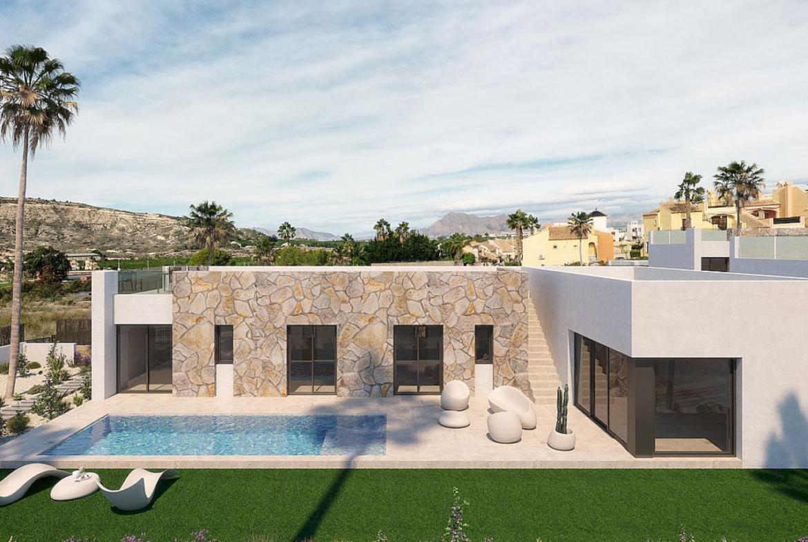 This villa is built all on one level and consists of a lounge/diner with patio doors leading out into the garden and terrace with a private swimming pool, an open plan modern kitchen. There is a master bedroom with fitted wardrobes, en suite bathroom with access to the terrace, two further double bedrooms with fitted wardrobes and a guest bathroom. A staircase leads up to a large private rooftop solarium which enjoys open countryside views and all day sun.