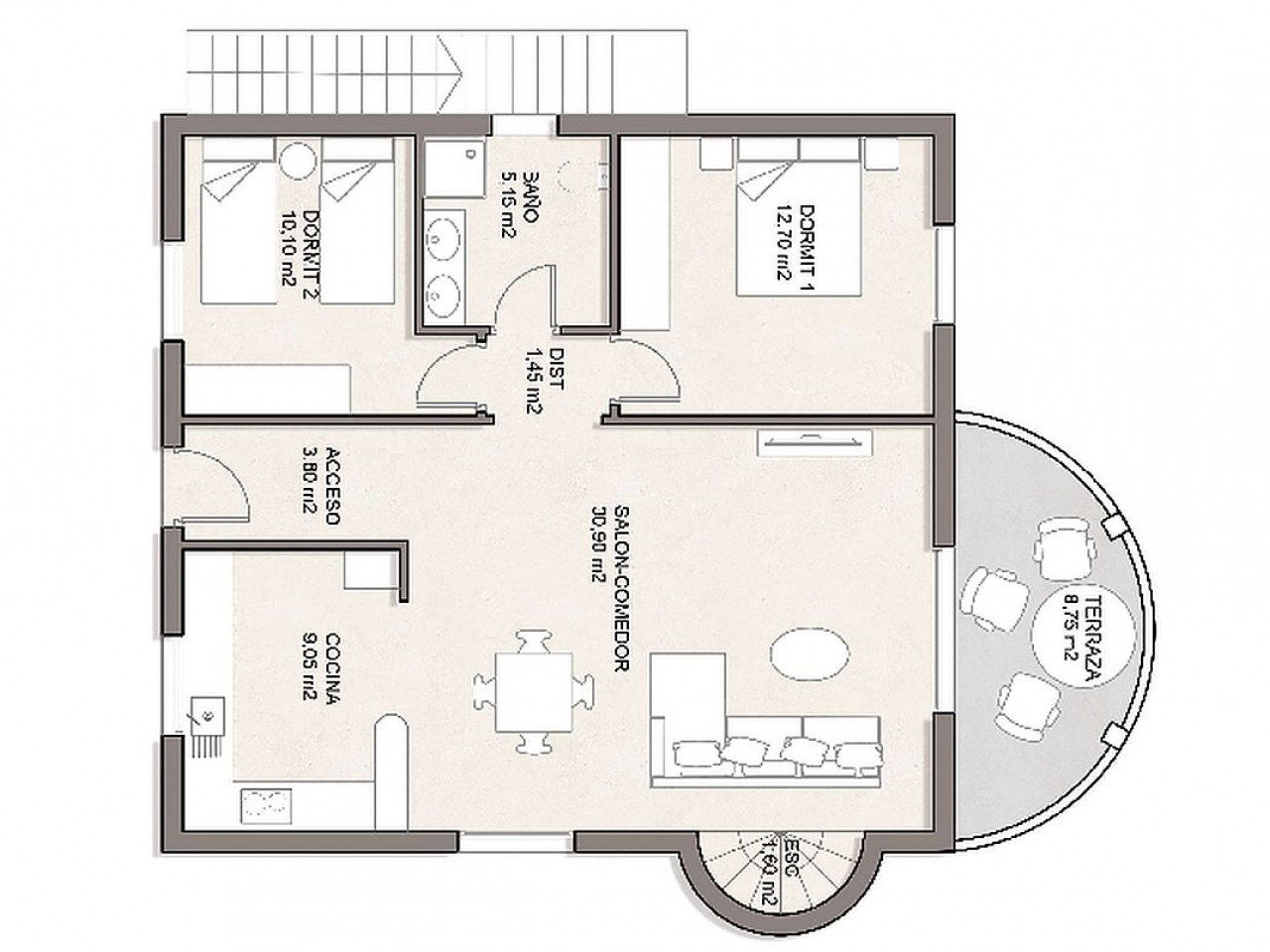 Vilas sudaro 3 miegamieji, viena didelė svetainė, baldais apstatyta virtuvė su buitine technika, 3 vonios kambariai ir terasa. Kiekviena vila turi atskirą sklypą su terasa, sodu su baseinu ir vieta automobiliui.