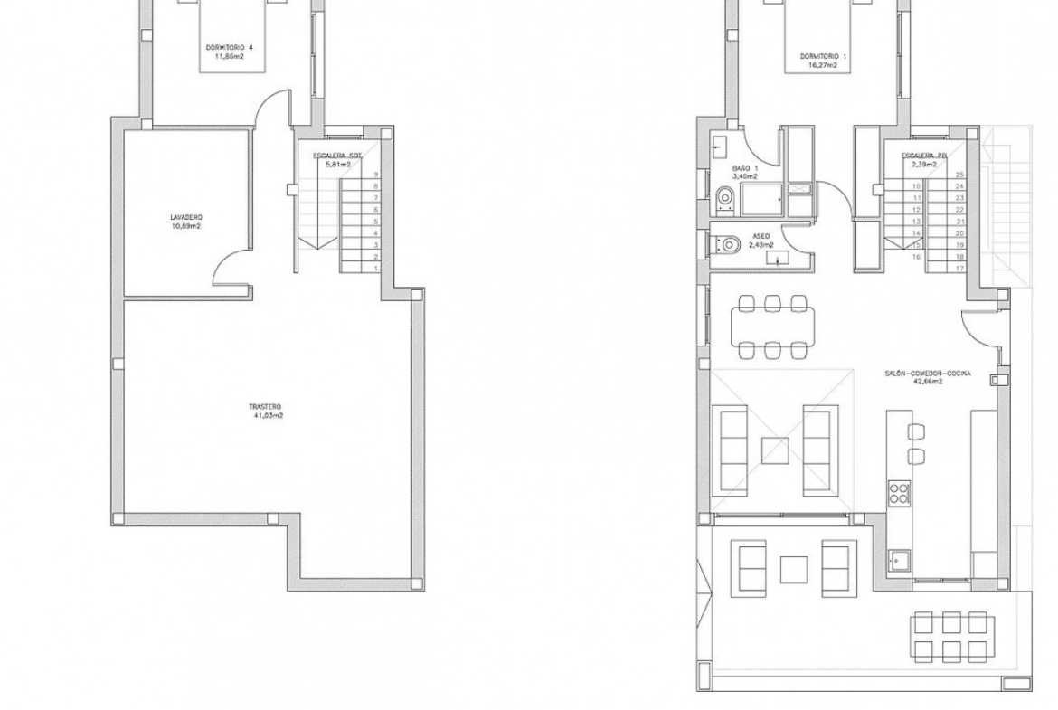 Antrame aukšte yra du dideli miegamieji su įmontuotomis spintomis, abiejuose yra vonios kambariai ir didelė svetainės erdvė arba knygų spinta.