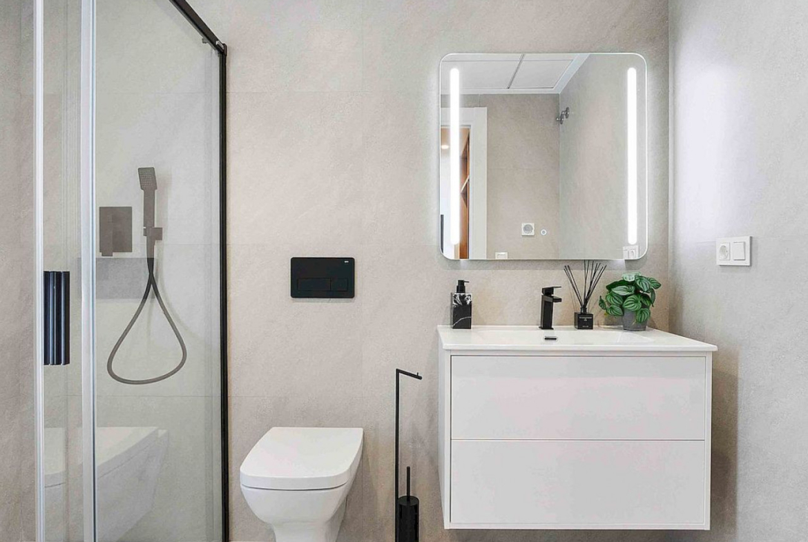 Šiuose šiuolaikiško dizaino namuose pirmenybė teikiama komfortui ir elegancijai, vonios kambariuose yra šildomos grindys ir aukščiausios kokybės apdaila. Apgalvotas išplanavimas ir funkcijos atitinka šiuolaikišką ir funkcionalų gyvenimą, užtikrina aukštą gyvenimo standartą ramioje ir saugioje aplinkoje.