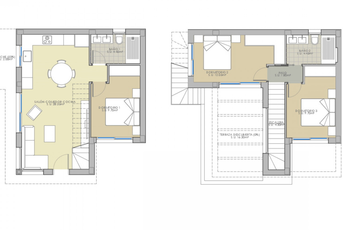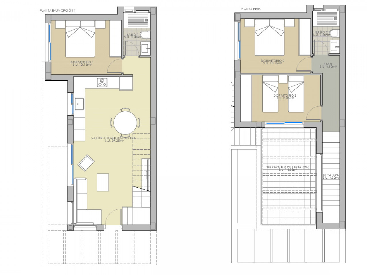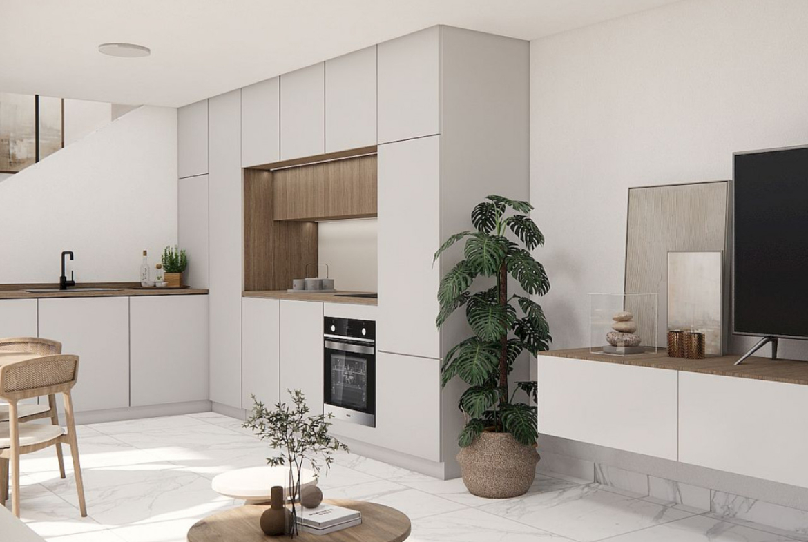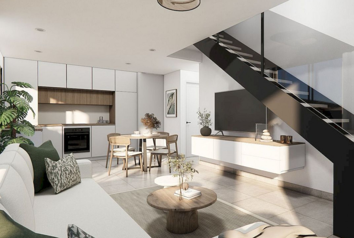 Šiuos dviejų aukštų namus sudaro trys dviviečiai miegamieji (visi su įmontuotomis spintomis ir du su tiesioginiu išėjimu į pirmojo aukšto terasą), drabužinė pagrindiniame miegamajame, du vonios kambariai, atskiras tualetas, moderni virtuvė su pusryčių baru ir atviro plano svetainė / valgomasis, vedantis į privatų sodą.