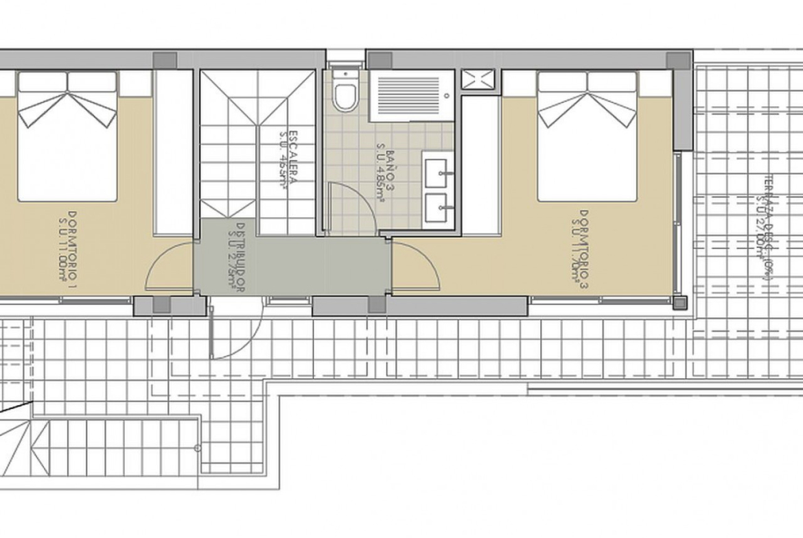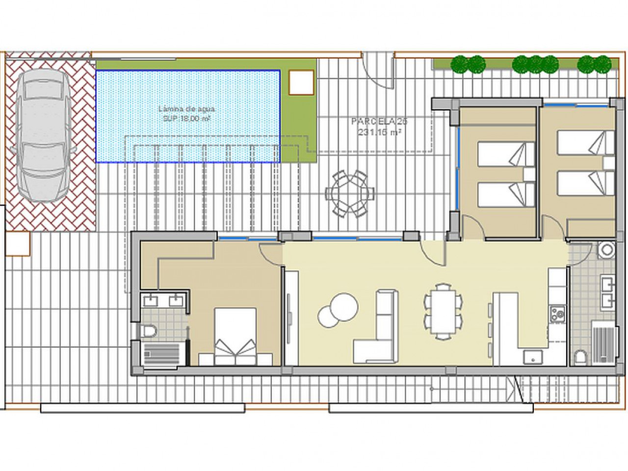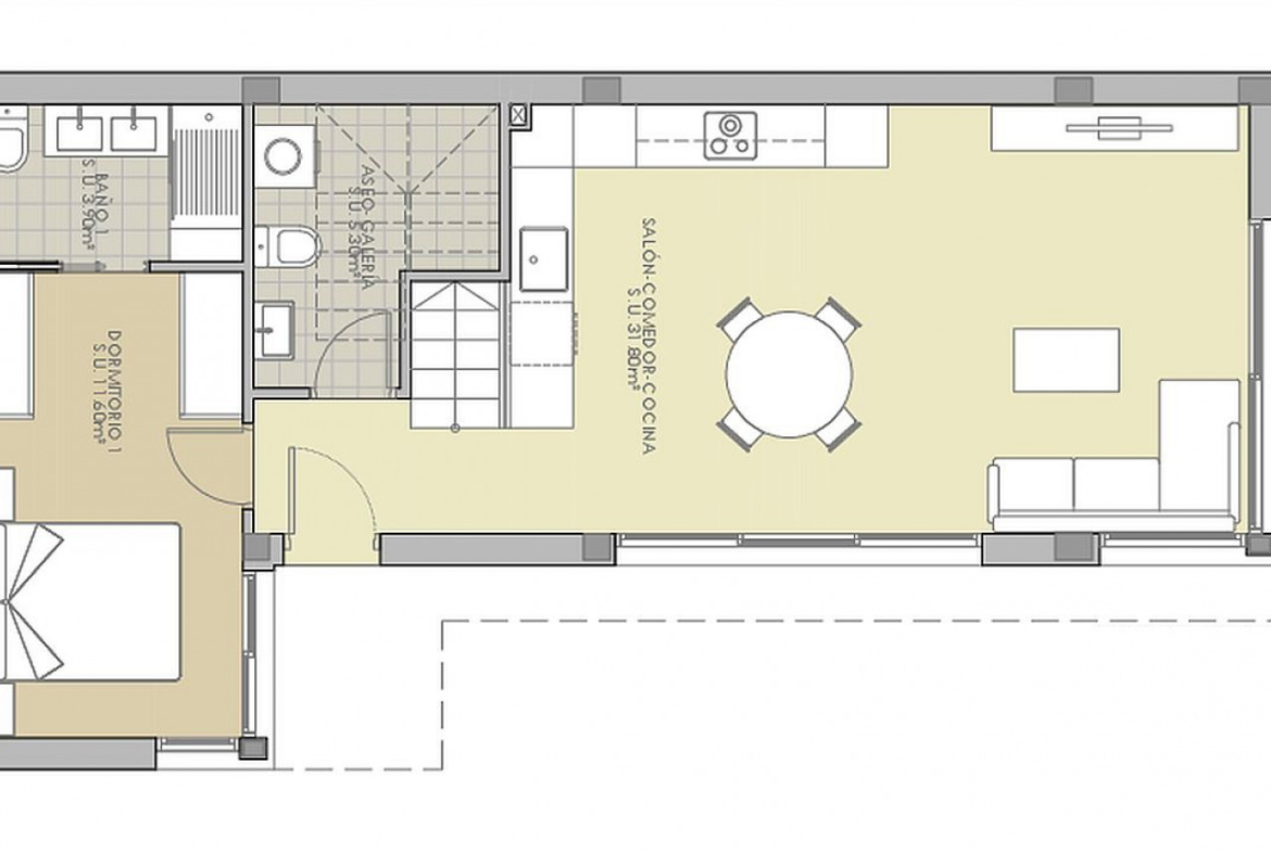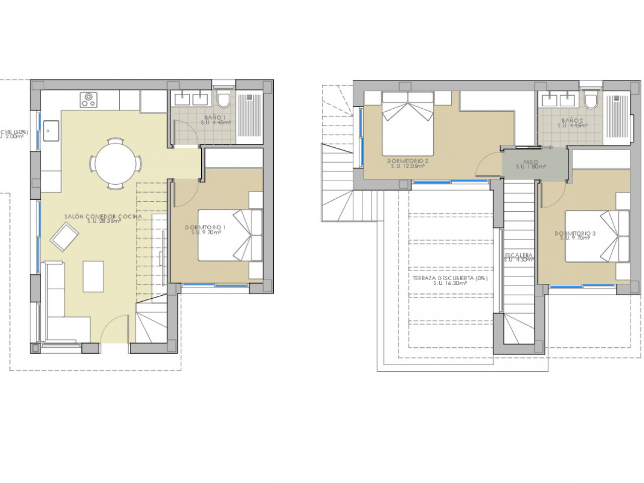 Šiuos dviejų aukštų namus sudaro trys dviviečiai miegamieji (visi su įmontuotomis spintomis ir du su tiesioginiu išėjimu į pirmojo aukšto terasą), drabužinė pagrindiniame miegamajame, du vonios kambariai, atskiras tualetas, moderni virtuvė su pusryčių baru ir atviro plano svetainė / valgomasis, vedantis į privatų sodą.