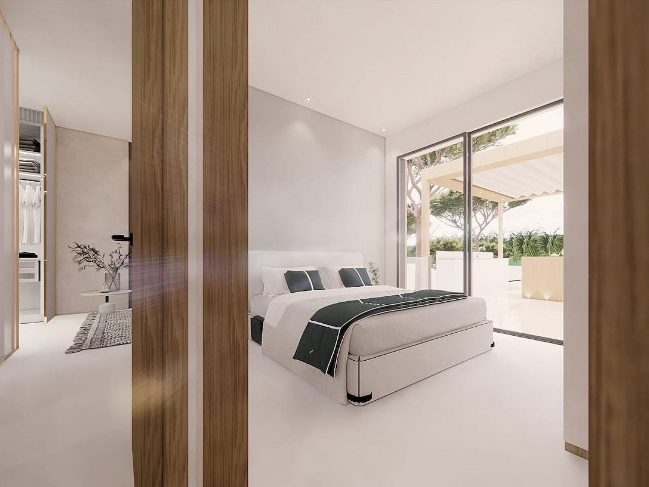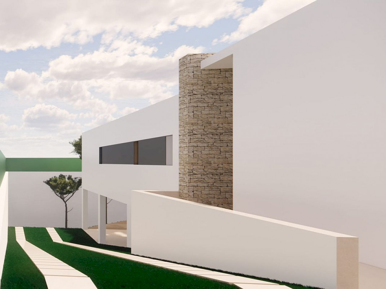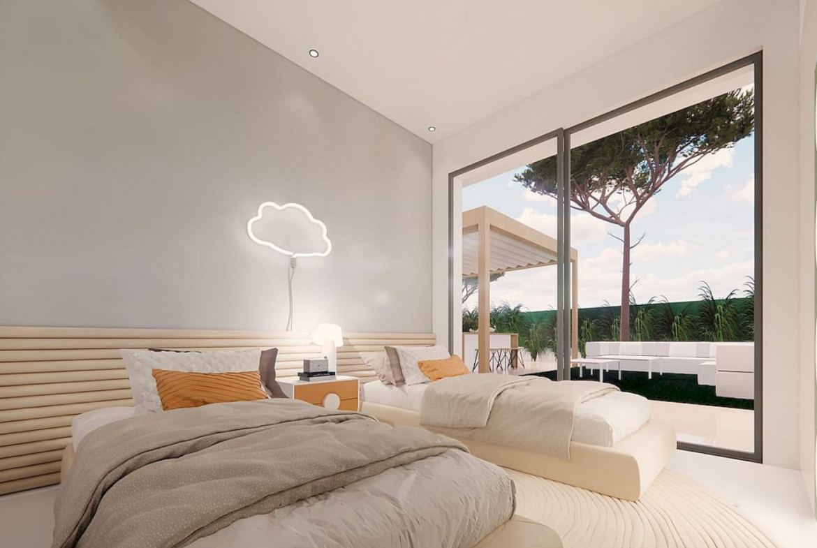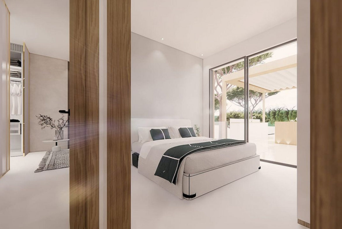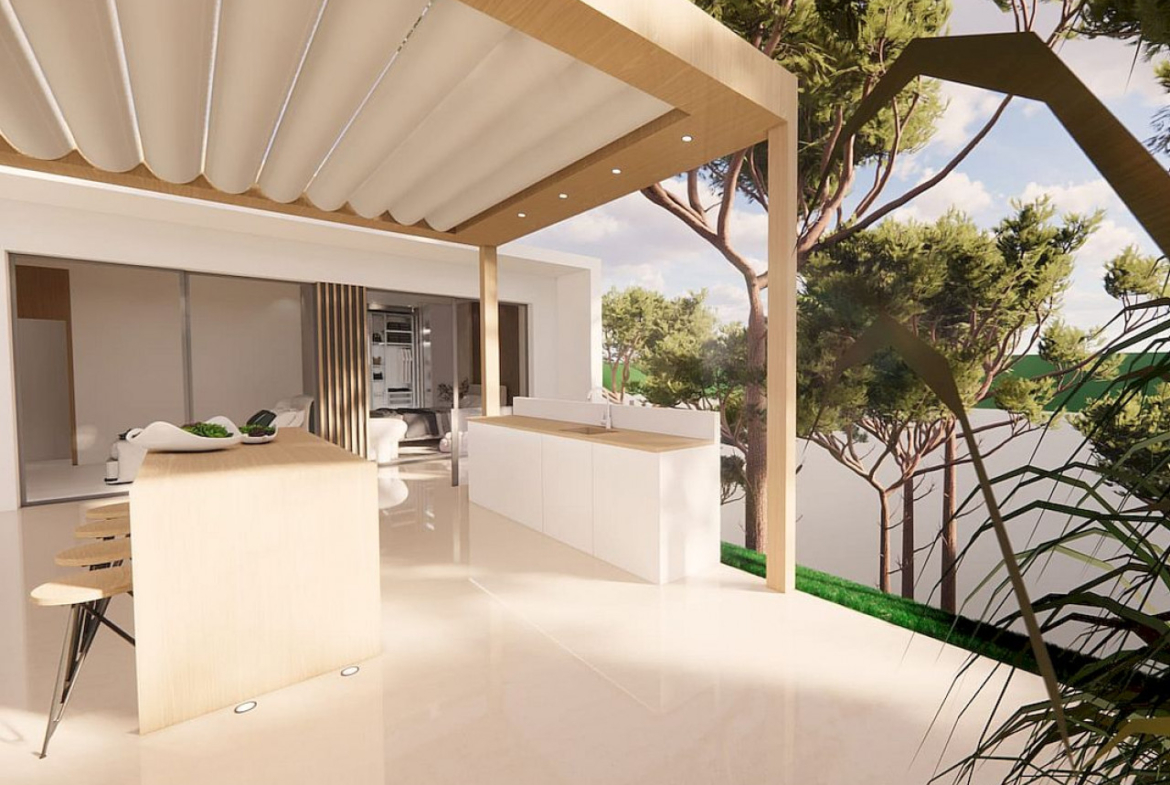 Šiuolaikinės nepriklausomos vieno aukšto vilos su privačiu baseinu, 3 miegamaisiais, 2 vonios kambariais ir svečių tualetu 800 m² sklypuose.