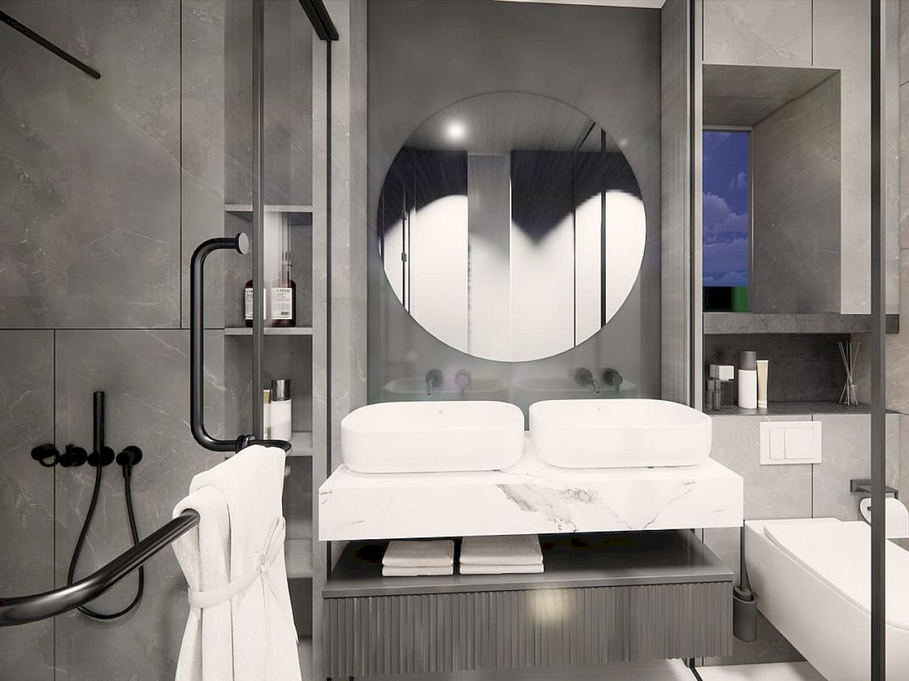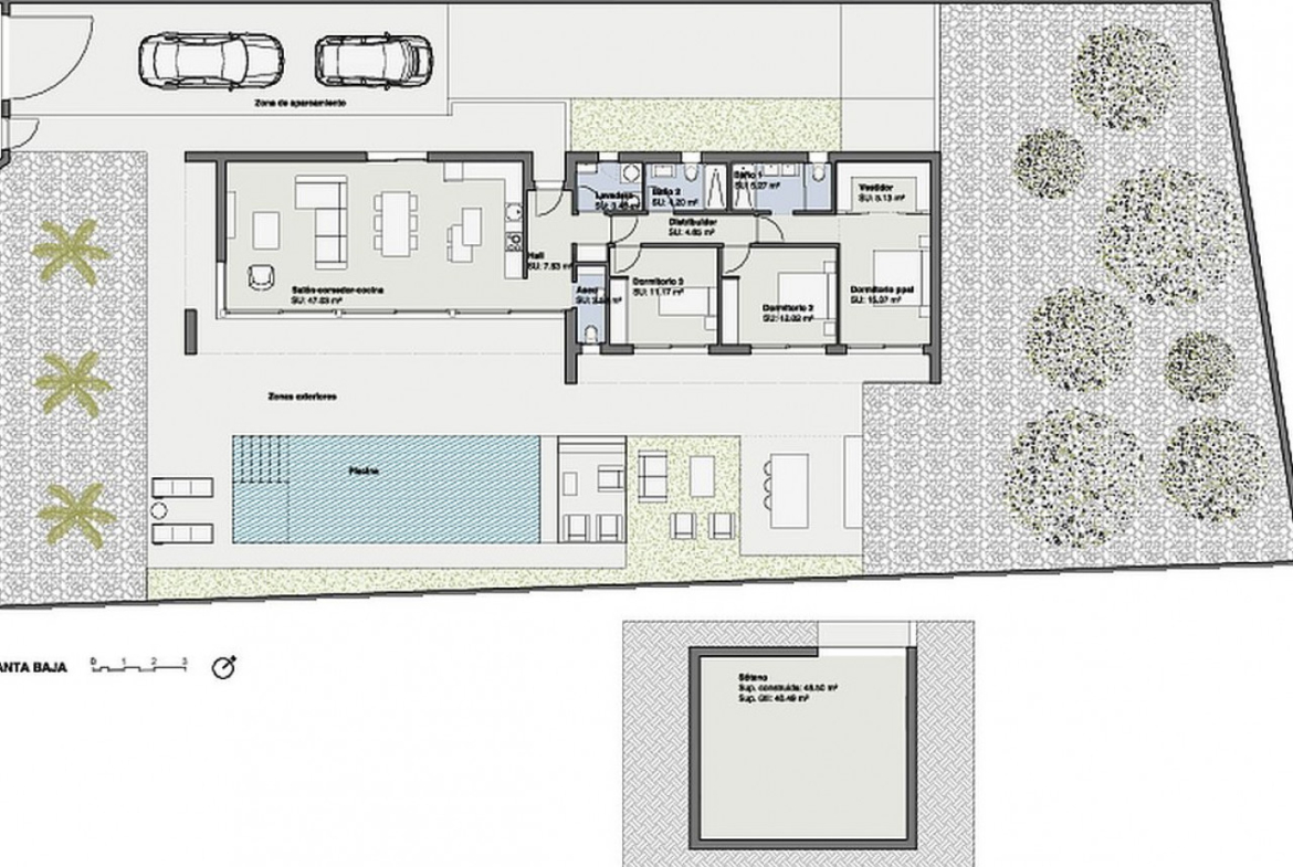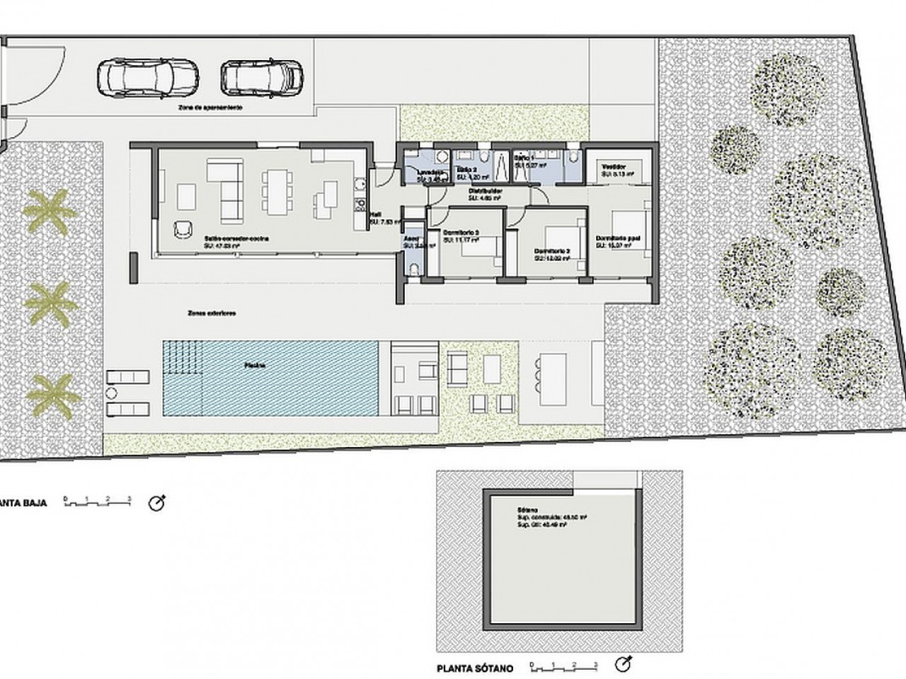 Kiekviena vila turi atskirą rūsį, sodą su privačiu baseinu su poilsio zona su vasaros virtuve ir automobilių stovėjimo aikštele dviem automobiliams.