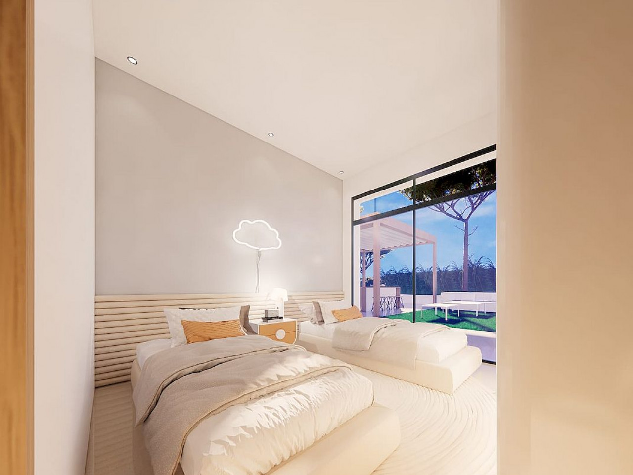 Šias gražias vilas sudaro holas / valgomasis su lauko durimis, vedančiomis į sodą su privačiu baseinu ir atviro plano virtuvę. Yra skalbykla, didelis pagrindinis miegamasis su persirengimo kambariu, vonios kambarys ir prieiga prie baseino, dar du dviviečiai miegamieji su įmontuotomis spintomis ir tiesioginiu išėjimu į baseino zoną, vonios kambarys ir svečių tualetas.