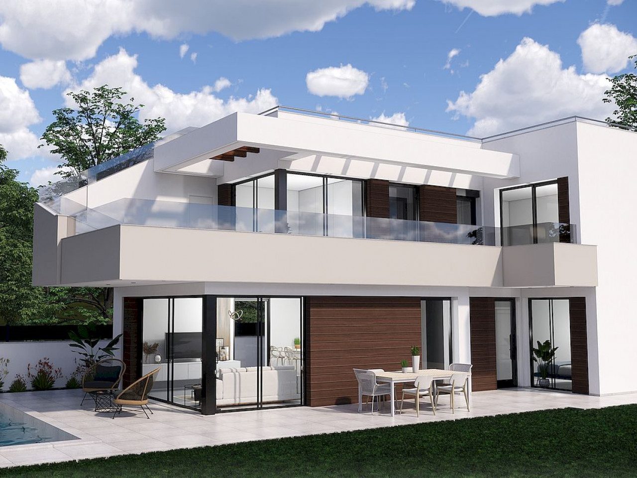 Bendruomenės modeliuose yra 3 miegamieji, 3+1 vonios kambarys, terasa ir soliariumas ant stogo, automobilių stovėjimo aikštelė ir bendras baseinas su kepsnine ir poilsio zonomis.