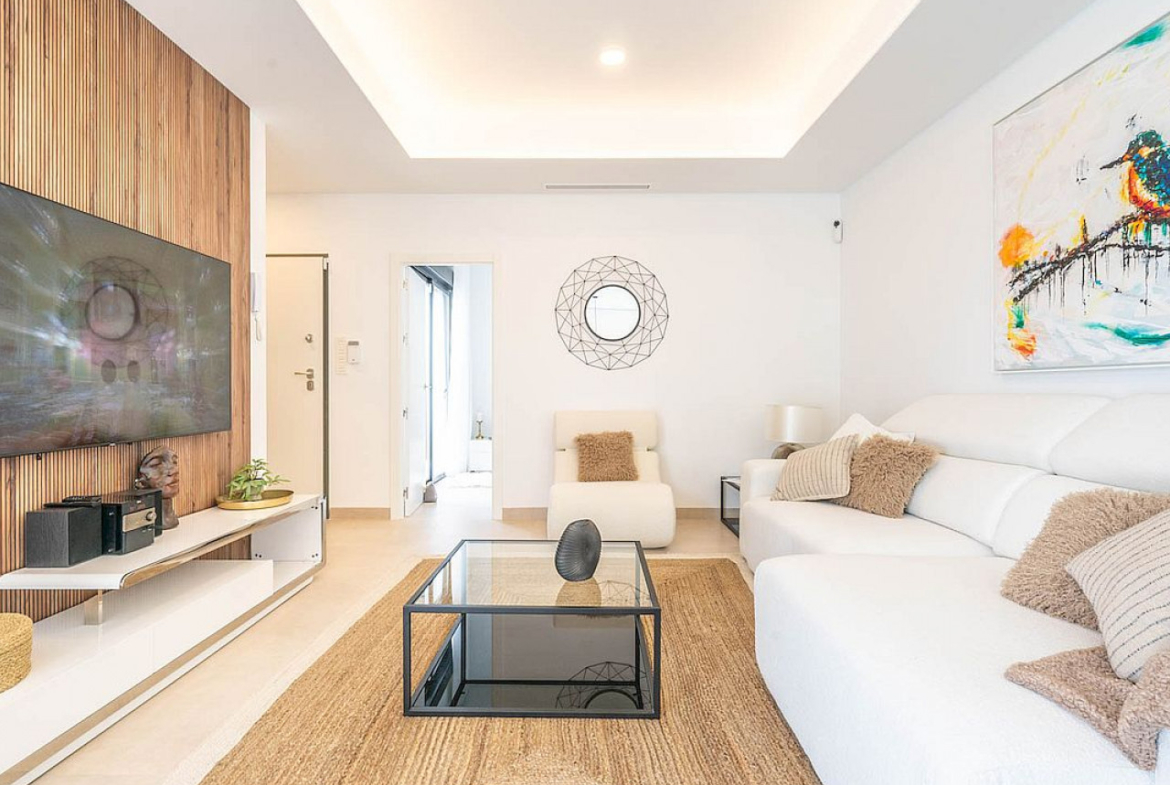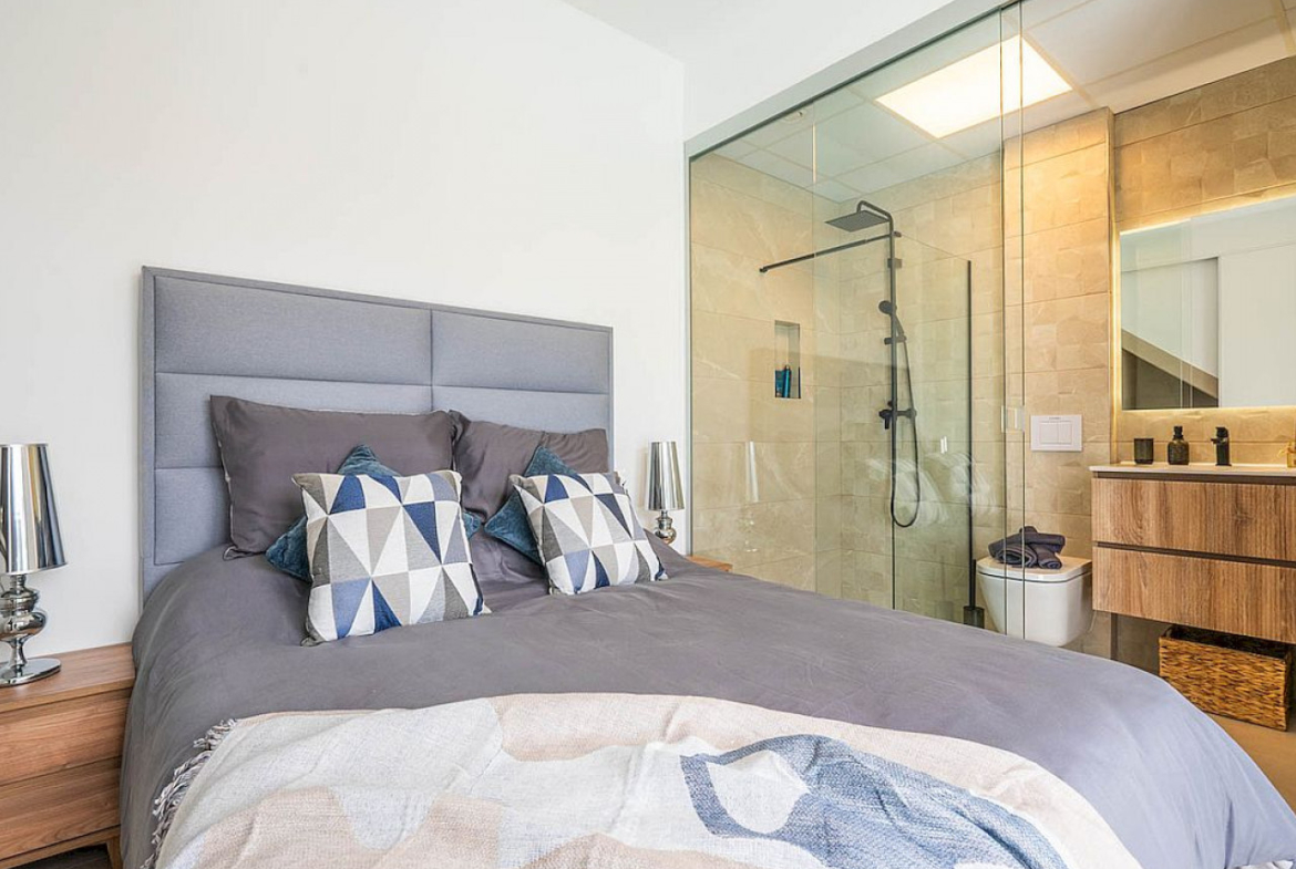 Šį nuostabią dviejų arba trijų miegamųjų būstą sudaro erdvi svetainė / valgomasis su lauko durimis, iš kurių patenkama į sodą su privačiu baseinu, atviro plano virtuvė su įmontuota buitine technika, pagrindinis miegamasis su įmontuotomis spintomis ir vonios kambarys, vienas arba du papildomi dviviečiai miegamieji su įmontuotomis spintomis ir pilnai įrengtas svečių vonios kambarys.