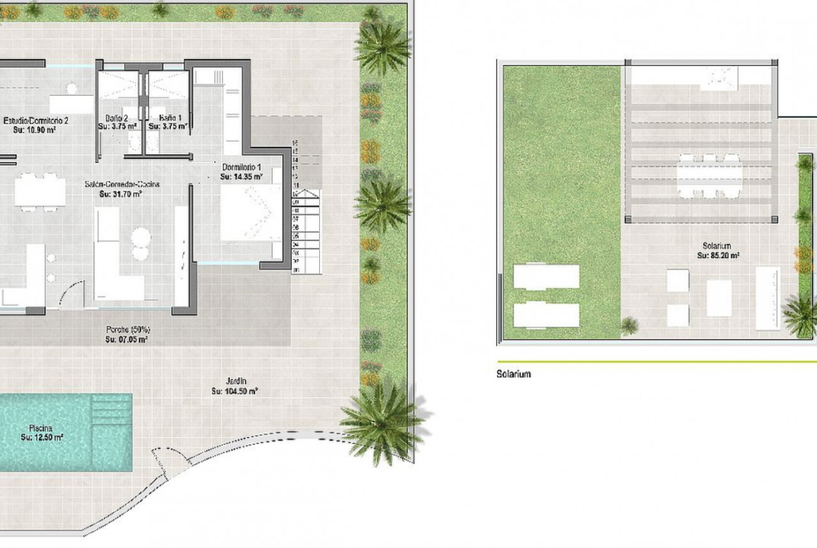 Būstas atitiks aukščiausius standartus, jame bus įrengtas privatus baseinas su saulės dušu ir daug žalių zonų, virtuvė pilnai įrengta, su buitine technika, apšvietimu, spintomis su stalčiais ir lentynomis, pilnai įrengti vonios kambariai, paruoštas įrengimui ortakis bei kondicionavimo sistema, vasaros virtuvė soliariume, privatus soliariumas, lauko parkavimo vieta ir elektromobilių įkrovimo punktai.