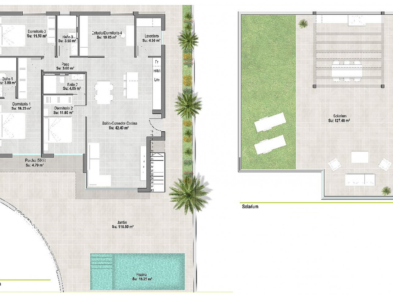 Šiose gražiose vilose, pastatytose laikantis aukščiausių kokybės standartų, yra 2, 3 arba 4 miegamieji ir 2 arba 3 pilnai įrengti vonios kambariai. Vilos buvo suprojektuotos šiuolaikiniame stiliuje pagal atviro plano koncepciją, kurią sudaro įrengta virtuvė ir svetainė-valgomasis.
