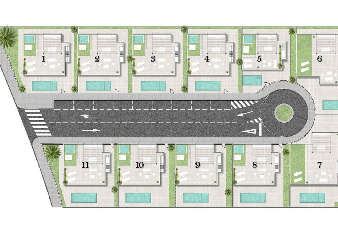 Čia rasite 11 nepriklausomų vilų su privačiu baseinu, soliariumu ir atvira automobilių stovėjimo aikštele, didelėmis terasomis į pietus bei vasaros virtuve, kurioje galėsite mėgautis saule ištisus metus.