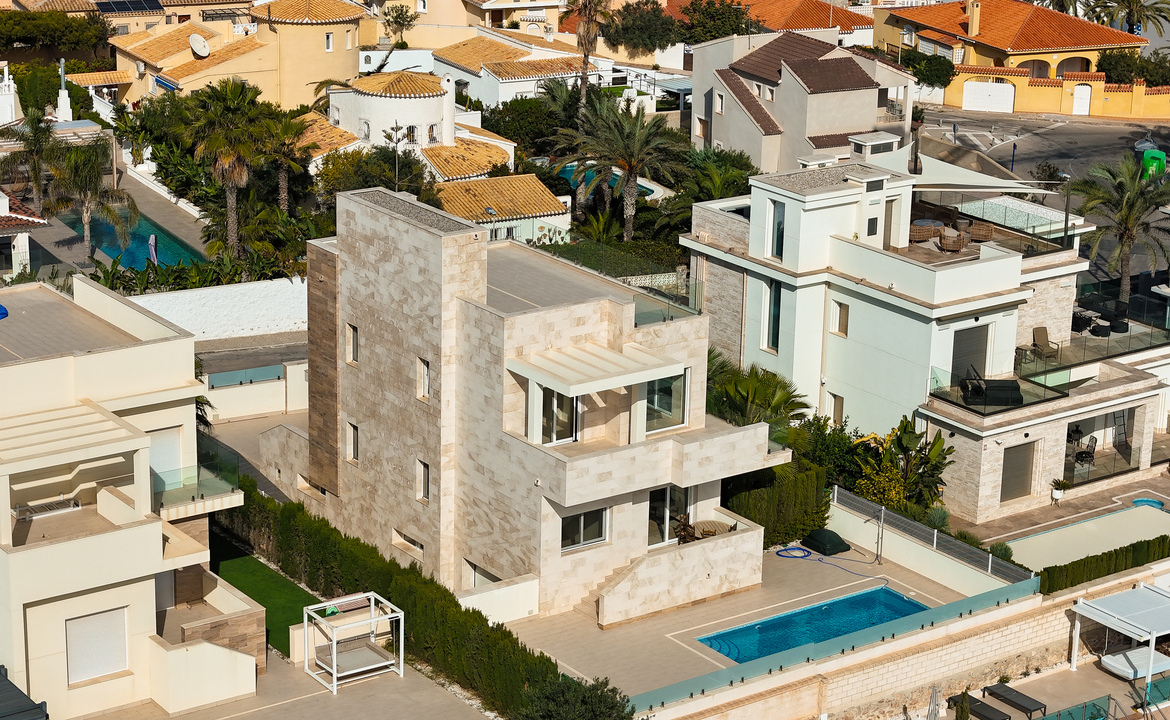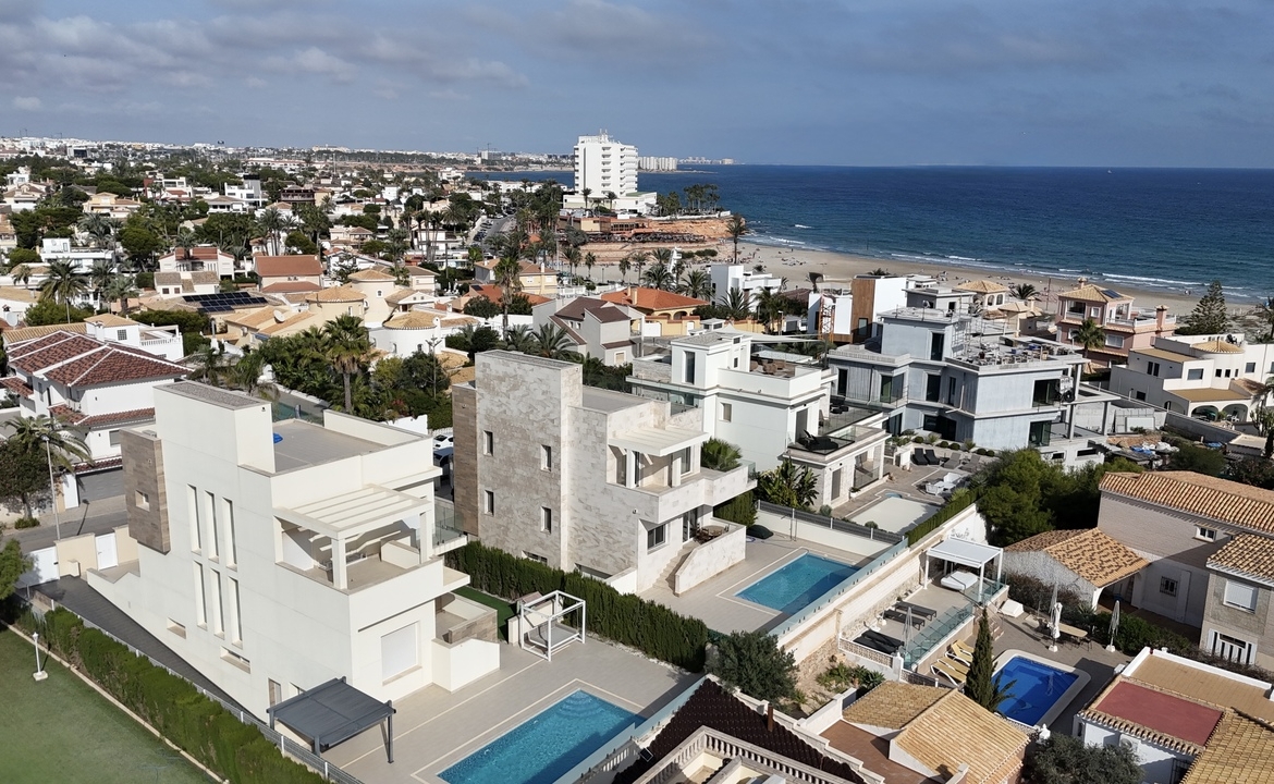 Nuostabi, moderni 5 miegamųjų, 4 vonios kambarių atskira vila yra fantastiškoje vietoje labai populiariame La Zenia rajone, vos 100 metrų nuo nuostabaus Mėlynosios vėliavos paplūdimio.