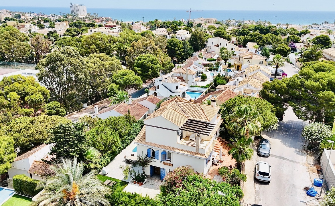 This impressive 5-bedroom, 3-bathroom beachside villa sits on a generous 600 m² plot in the sought-after area of Orihuela Costa. Offering 220 m² of beautifully designed living space across three levels, this home delivers the perfect blend of style, comfort, and convenience.