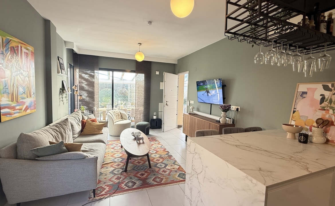 Svetainė ir virtuvė: Suprojektuota stilinga atviro plano bendra erdvė, pritaikyta kasdieniam patogumui.