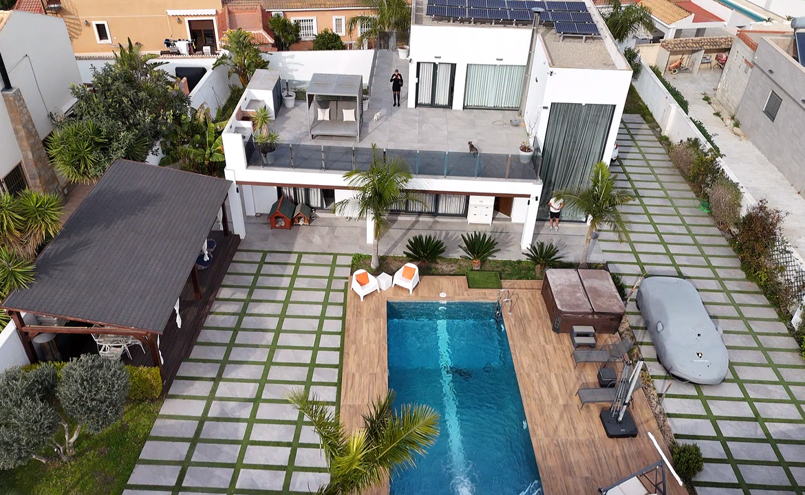Patirkite tikrą prabangą įspūdingoje viloje, įsikūrusioje prestižiniame Los Balcones rajone. Milžiniškas 1 000 m² sklypas ir apgalvotas dizainas sukuria „wow“ efektą tiek viduje, tiek išorėje.