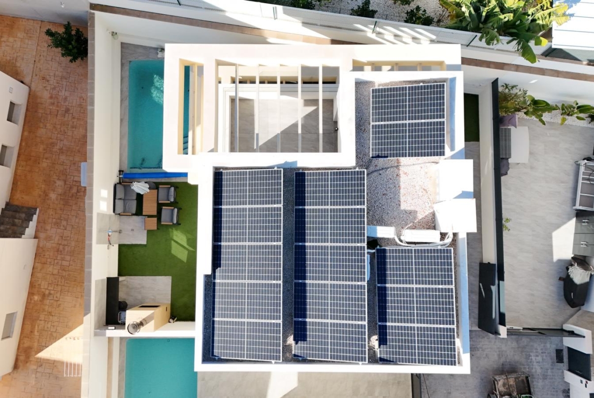The house also stands out for its high energy efficiency, thanks to the installation of 15 solar panels, which significantly reduce electricity consumption.