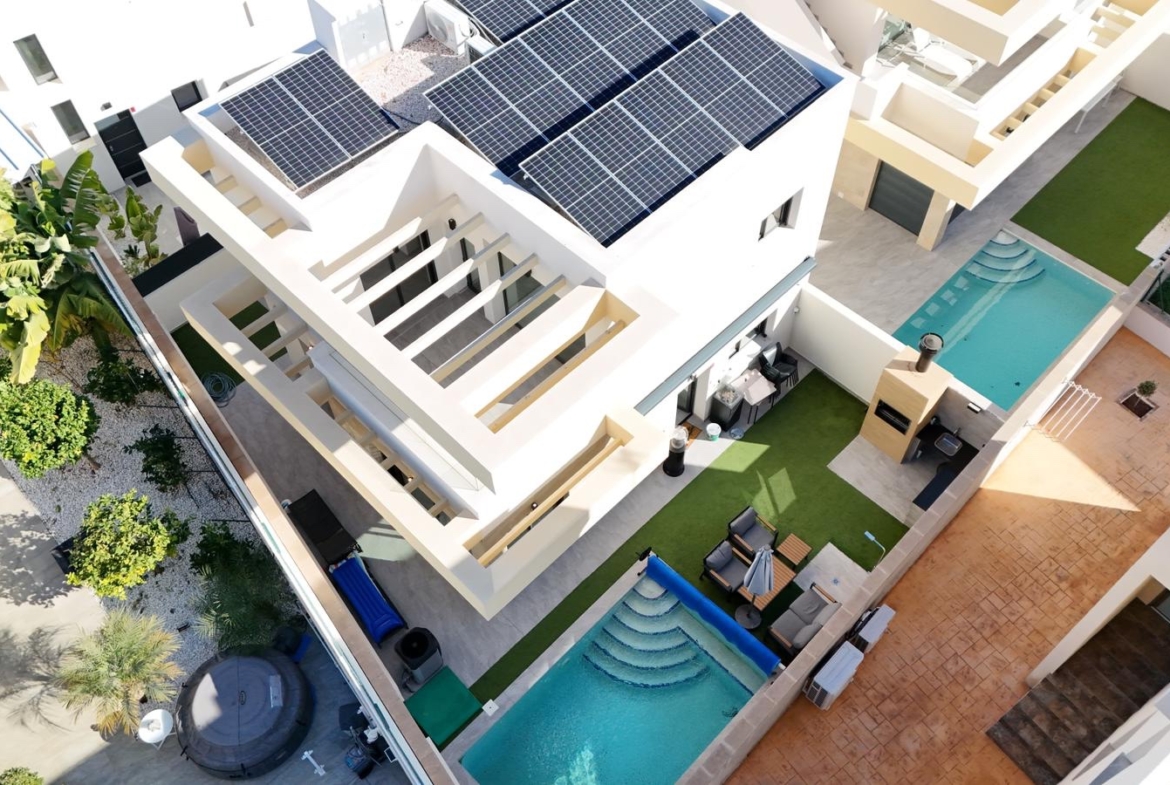 Discover this spectacular detached villa with a contemporary design, built just 3 years ago, located in a quiet residential area a few minutes from the charming village of Los Montesinos, on the Costa Blanca. A home that combines comfort, energy efficiency, and spaces designed to enjoy the Mediterranean lifestyle.