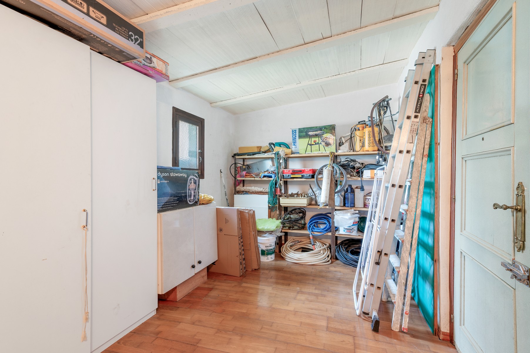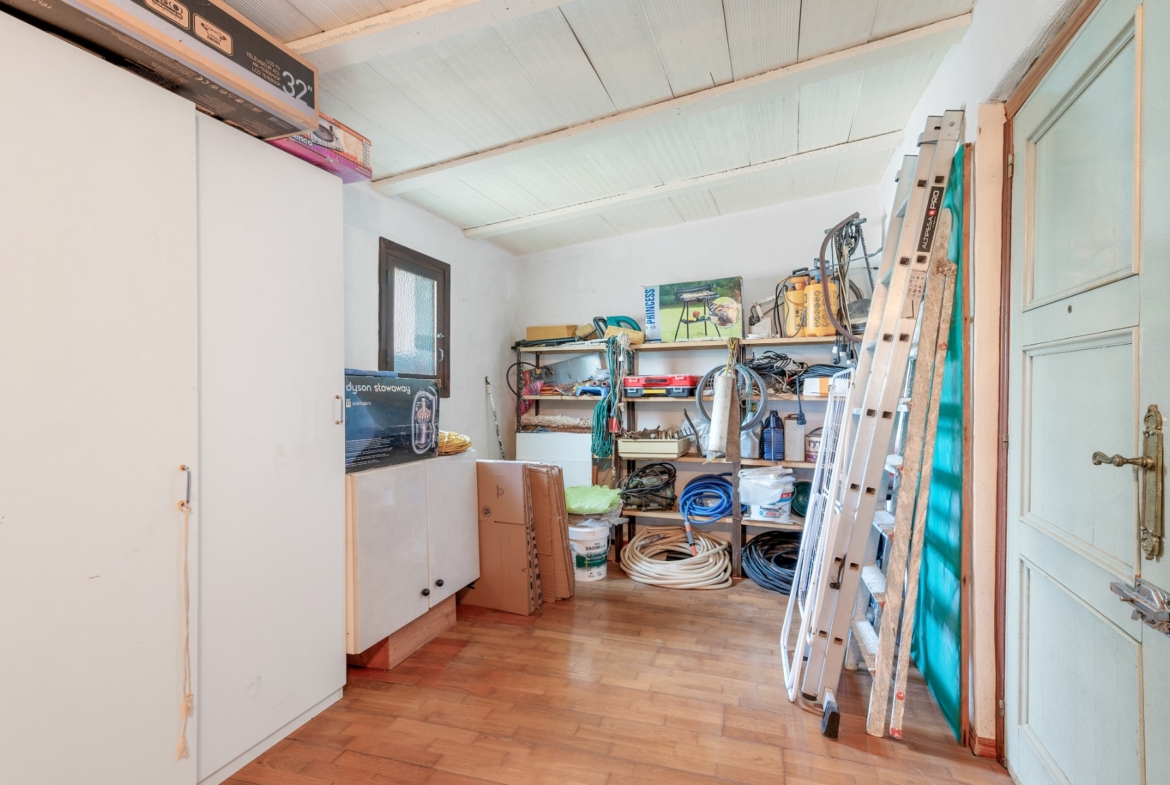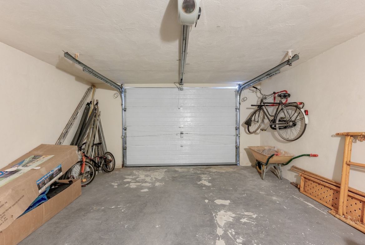 Šalia vilos yra privatus garažas vienam automobiliui su dirbtuvėmis ir sandėliuku. Taip pat yra privatus uždaras įvažiavimas su vieta automobiliui.
