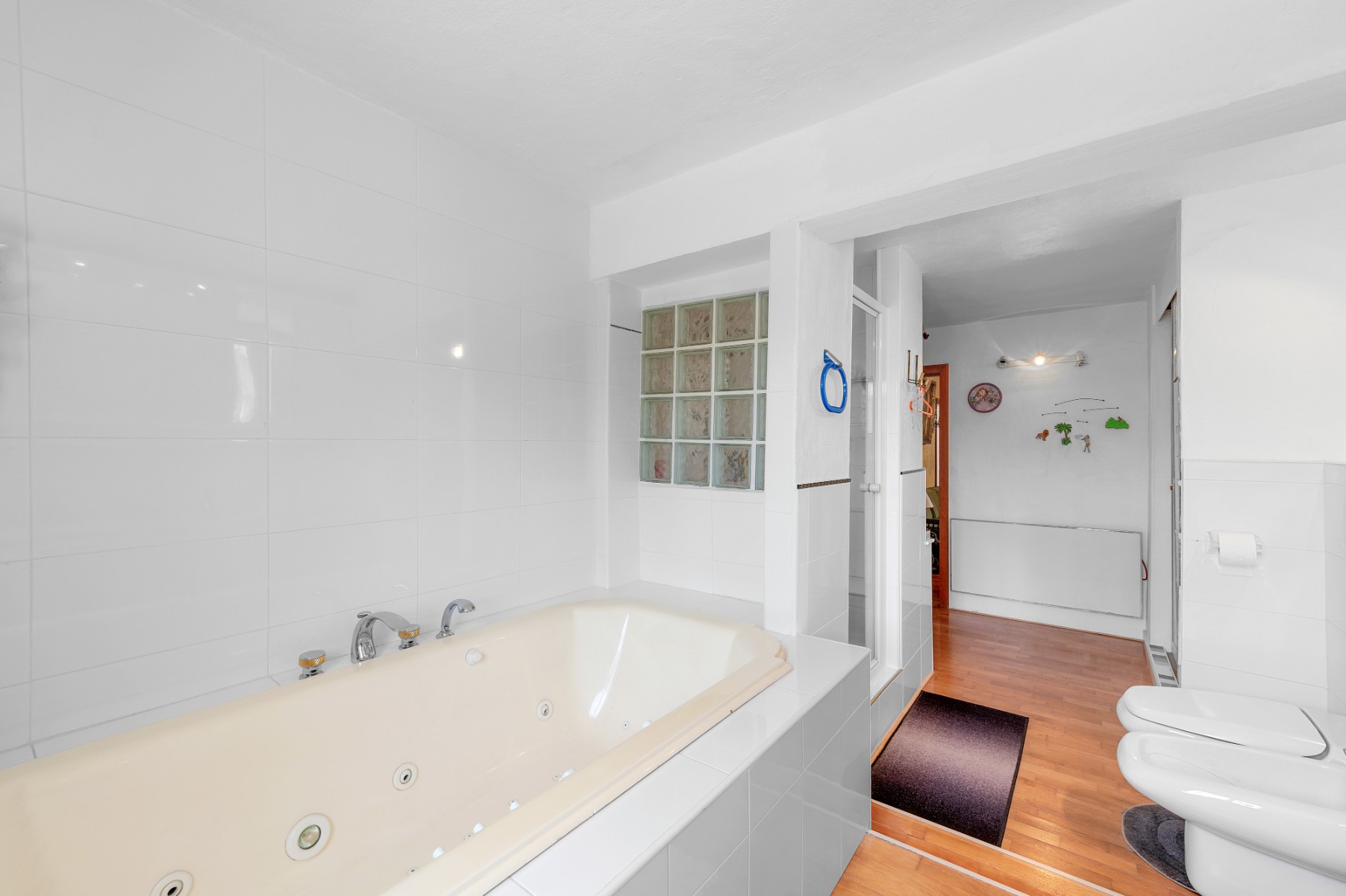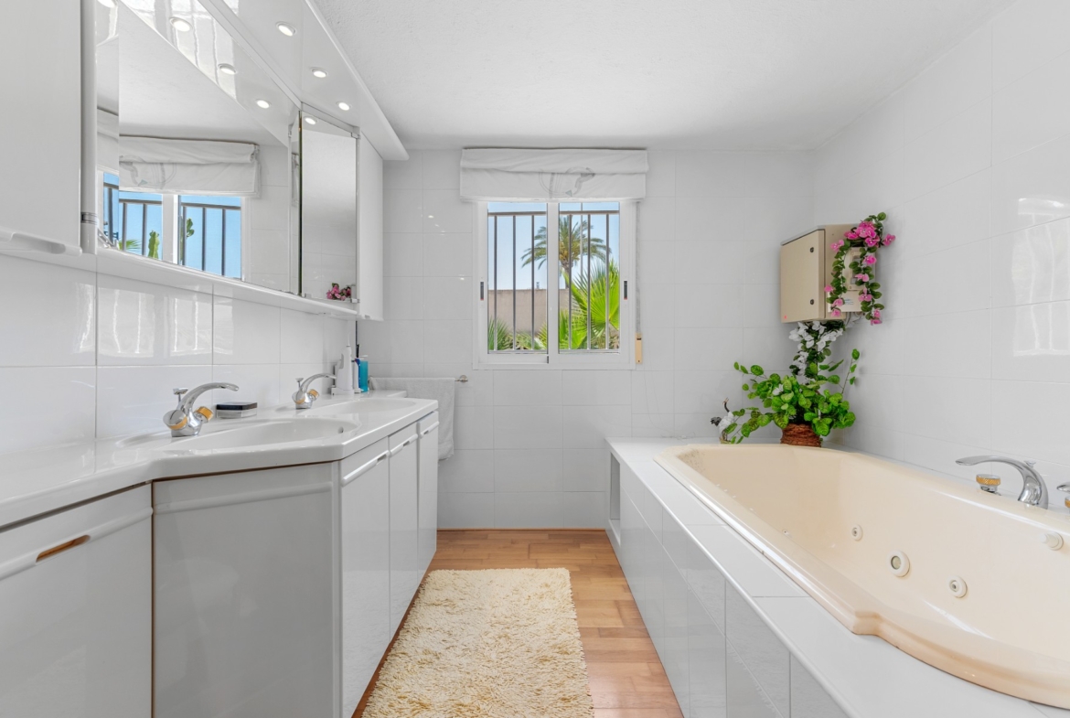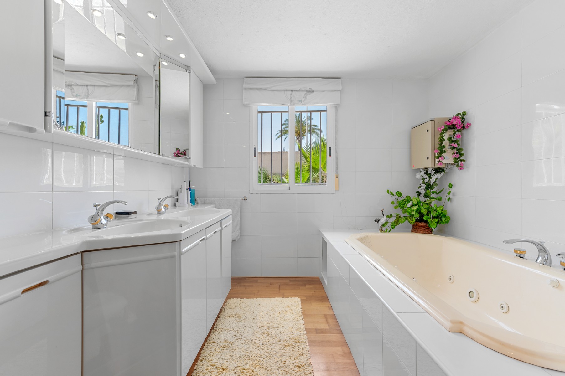 Šioje nuostabioje viloje pirmame aukšte yra keturi dideli miegamieji, visi su sieninėmis spintomis. Viename iš miegamųjų yra nedidelis vonios kambarys. Taip pat yra didelis šeimos vonios kambarys su vonia, atskiru dušu ir WC.