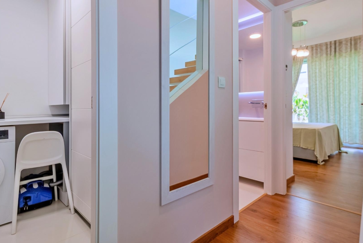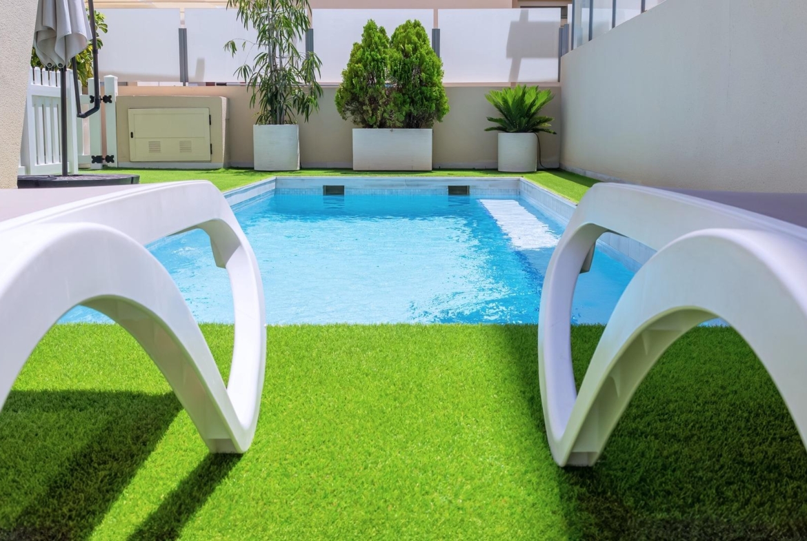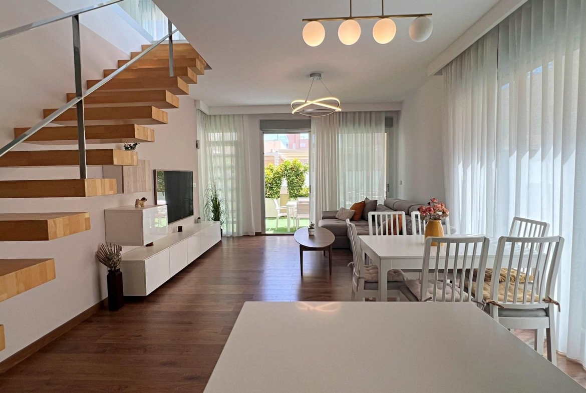 An exquisite combination of spaciousness, light, and sea breezes awaits you in this elegant villa, located just a two-minute walk from Mil Palmeras , one of the best beaches in the Alicante province . Here, you don’t have to choose between comfort, nature, and amenities: everything has been perfectly brought together in one place.~This villa is more than just a house. It’s a beachfront lifestyle, surrounded by palm trees, golden sand, and an endless horizon. It’s a place you’ll always want to return to… and stay.~Built on a 220 m² plot , this villa is carefully designed to offer functionality, light, and harmony. The layout includes:~• 3 spacious bedrooms , each with its own en-suite bathroom~• An open-plan living-dining room, full of natural light, with high ceilings and large windows with direct access to the garden~• A modern and functional kitchen, ideal for family gatherings or get-togethers with friends.~• A terrace overlooking the garden and pool~• A private 50 m² solarium with open views of the sea and mountains — the perfect place to disconnect and enjoy~The exterior features a private swimming pool , landscaped garden, and a parking space within the property. All materials and finishes have been selected to high-quality standards.~The terrace and solarium offer breathtaking views of the Mediterranean Sea . Ideal for breakfast at sunrise, relaxing at sunset, or simply enjoying the peace and quiet and the beauty of the surroundings.~Mil Palmeras is one of those areas that maintains the perfect balance: tranquility and proximity to everything you need. The beach is literally just steps away. Nearby you’ll find restaurants, cafes, supermarkets, and pharmacies. The prestigious Las Colinas or Campoamor golf courses are only a 10-minute drive away , Alicante Airport is less than an hour away, and Murcia Airport is about 30 minutes away.~Investing in this villa is not simply about acquiring a house by the sea. It’s about choosing quality of life, privacy, contemporary design, and a prime location on the Costa Blanca.~~