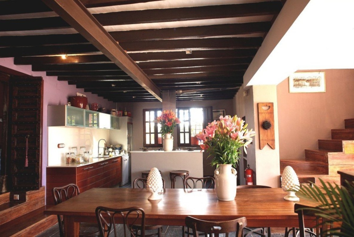 friends. The Oasis wakes up caressed by the sunshine with the visit of the partridges, rabbits, hermits and turtledoves who walk inside the fenced property. When the season comes, the orange blossom delights the senses. The Pedrera area is considered as a wet land protected area, that is why it will never be invaded by any kind of urbanistic projects. The strength and the colors of the sunsets are captivating and when the night comes you only have to let yourself be embraced by the scents and the gentle breeze. The large open spaces, and warm and cozy rooms enables you to spend great moments at any time of the day or evening with family or friends. The 14.5m x 7m private swimming pool is a fantastic assett and set in a stunning location of the house to capture the best of the daytime sunshine and evening sunsets and stars. The property is currently used as a successful business or simply used as a family home. The business could be corporate events company presentations, fabulous weddings,private celebrations or a even long/short term rental option. Natural spring water is fed to the property from the mountains via a well at the house. There is seating accommodation for up to 450 + 900 guest in two different areas. There is car parking, pool, terraced areas and large garden areas surrounding the property. The property consists of 320m2 of happiness where the notion of light, space and peace appear in their full dimensions. A different place to live a different moment…