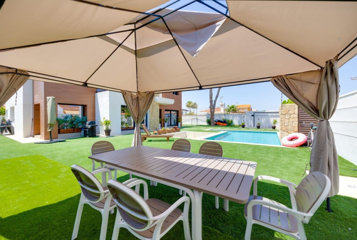 Išskirtinė prabangi vila prestižinėje Torreta Florida zonoje įsikūrusi visai šalia garsiųjų rožinių druskos ežerų ir vos kelios minutės kelio automobiliu nuo geriausių Torrevieja paplūdimių, tad būstas nutolęs nedidelį atstumą nuo jūros. 2024 metais pastatytas modernus būstas stovi įspūdingame 850 m² privačiame sklype ir siūlo 250 m² meistriškai suplanuoto gyvenamojo ploto, kuriame dera architektūrinė elegancija bei pažangiausios technologijos.