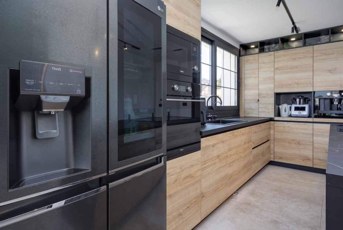 Namų širdis – pagal individualų užsakymą pagaminta „Schmidt“ virtuvė, kurios vertė siekia 25 000 eurų. Čia sumontuota aukščiausios klasės integruota buitinė technika, indukcinė kaitlentė su integruotu gartraukiu bei panaudota prabangi keramikos apdaila. Visame būste sumontuoti matinio juodo aliuminio langų bei durų rėmai. Kiekvienas elementas parinktas siekiant estetikos bei funkcionalumo dermės.